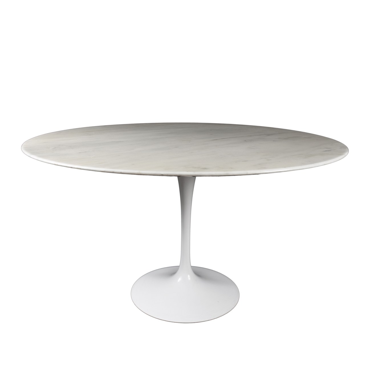 Eero SAARINEN (1910-1961) e KNOLL INTERNATIONAL (Éditeur) Tavolo da salotto “Tulip”, piano in marmo Carrara, Knoll International firmato 172 – 173 base in alluminio in buone condizioni, leggeri segni di utilizzo.