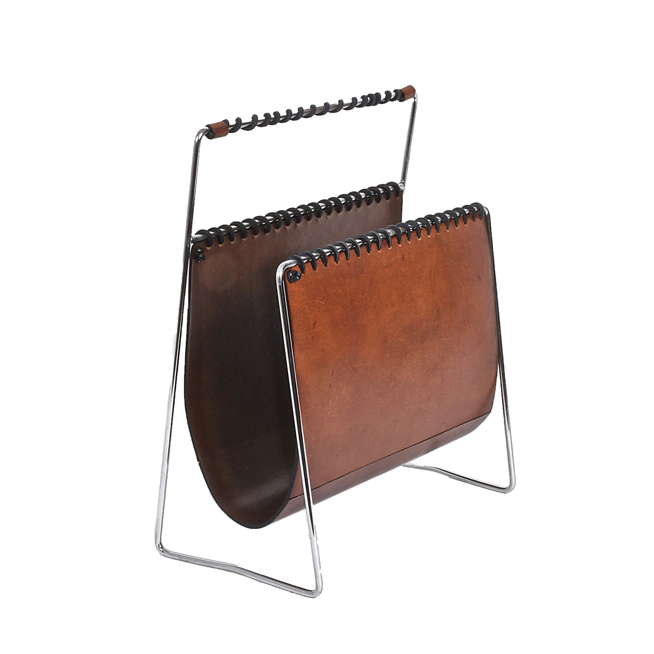 Portariviste in acciaio cromato e cuoio degli anni 70 nello stile di Jacques Adnet