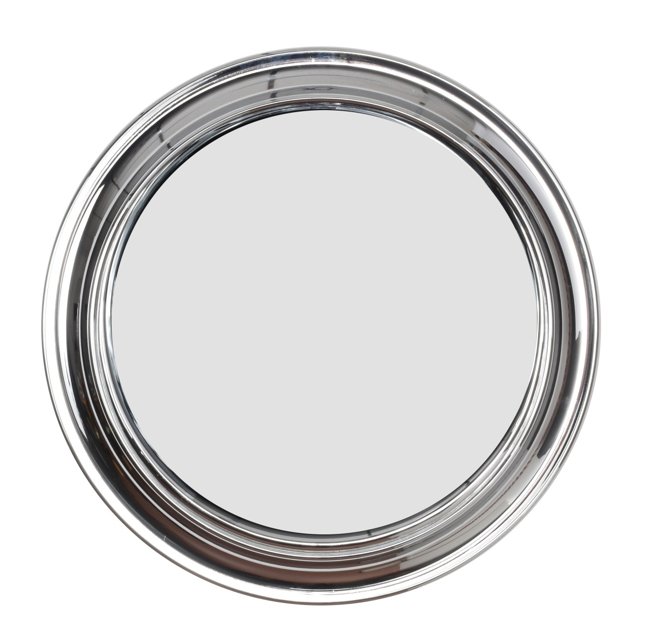 Specchiera cromata modernista italiana. Specchio circolare con cornice cromata lucida. Lo specchio originale al centro è in condizioni eccellenti e il telaio ha un centro concavo che crea profondità e trama. Questo semplice specchio è abbastanza sorprendente e moderno