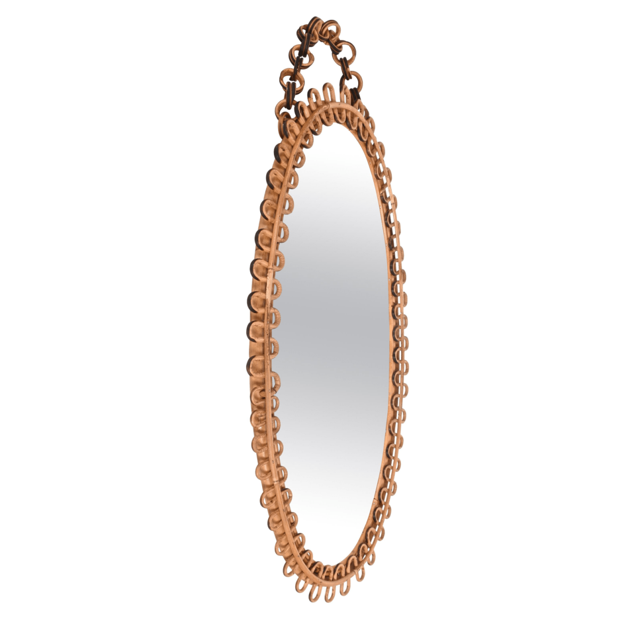 Specchio ovale molto decorativo in rattan curvato e cornice in bambù di Franco Albini, Italia, anni ’50.