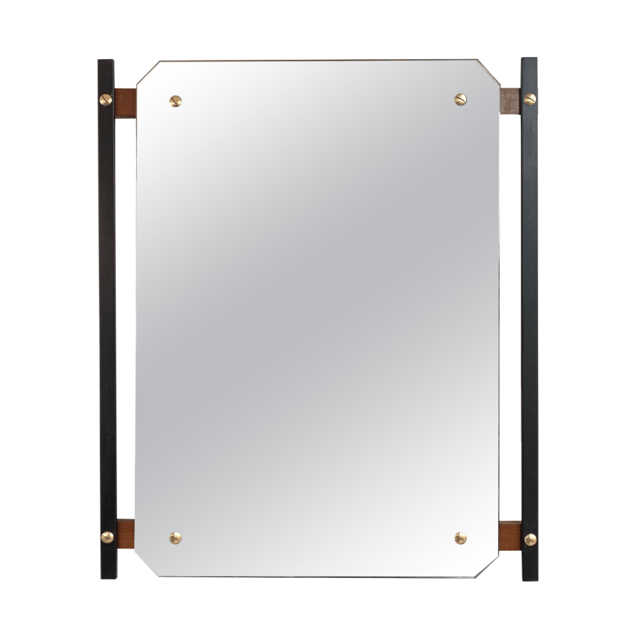 Grande specchio a parete galleggiante italiano di Meregalli & Ernesto Radaelli.Realizzato con legno e metallo smaltato.