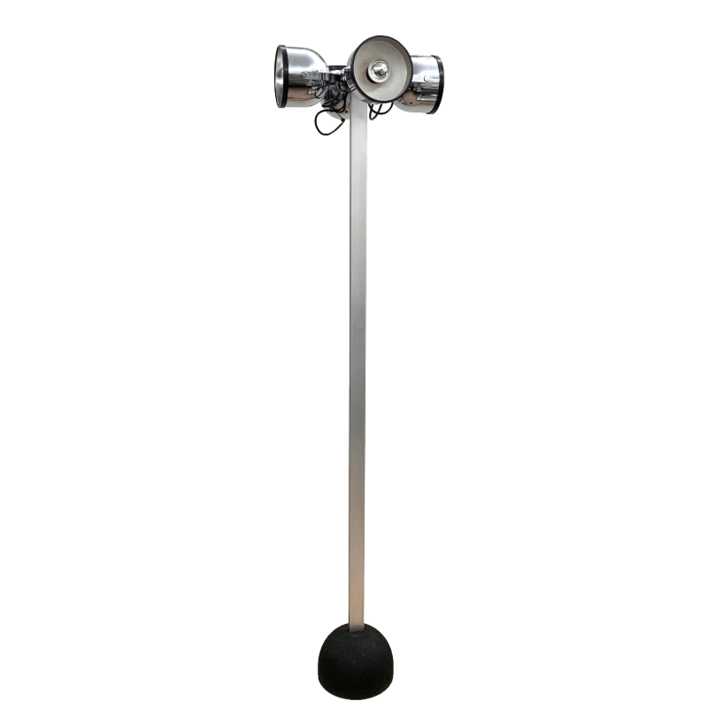 Lampada da terra Sistema Trepiù di Gae Aulenti e Livio Castiglioni per Stilnovo (4 incisioni), Italia 1972. Impressionante lampada da terra a quattro luci rotonde che può essere ruotata in tutte le direzioni. Realizzato in metallo cromato e alluminio con base in ghisa. Utilizzare 4 lampadine E 27 non incluse.