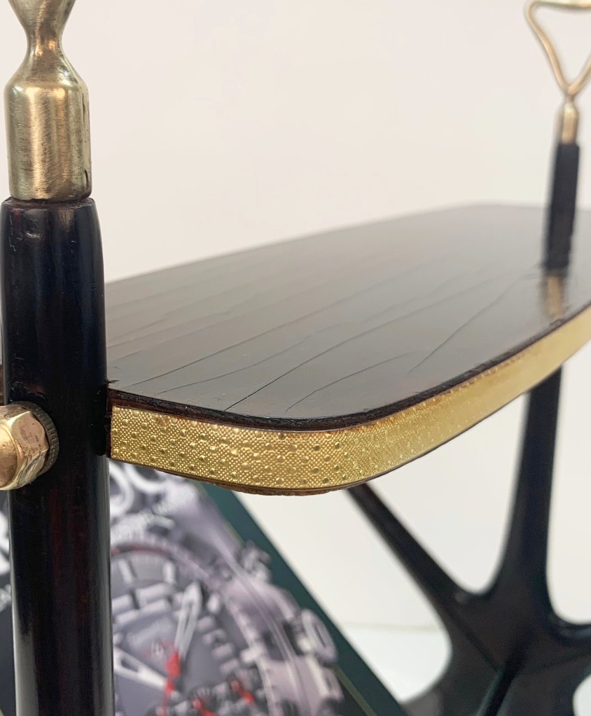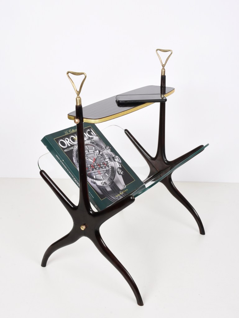 Questo meraviglioso pezzo è stato progettato in Italia negli anni ’50 da Cesare Lacca. Questo oggetto è in magnifiche condizioni vintage, è composto da vassoio in vetro e mogano disegnato in linee sinuose ed eleganti.