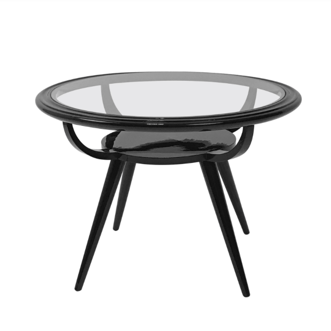 Tavolino Art Deco Italiano. Laccato con due ripiani – Coffee Table Italian Art Deco 1940s Round Glass Lacquered Wood, Ico Parisi Style