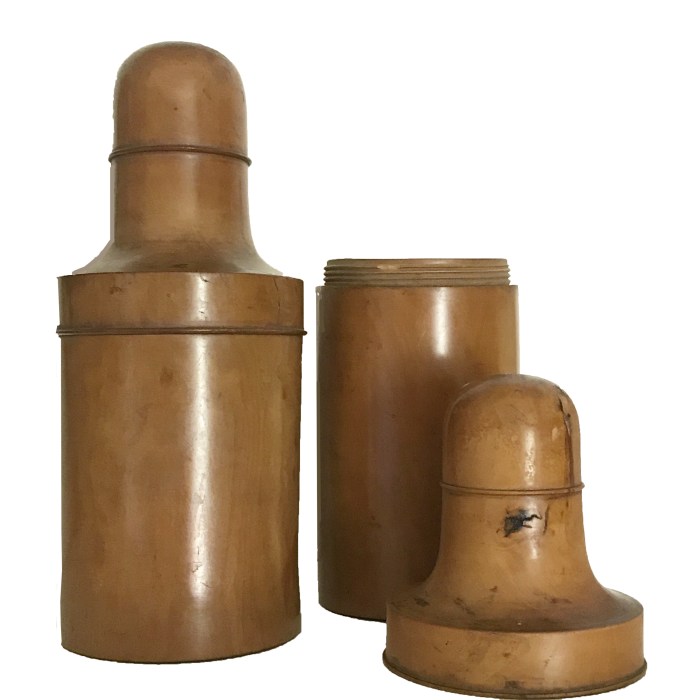 Scatole da farmacia a forma di bottiglia in legno di bosso. Da collezione