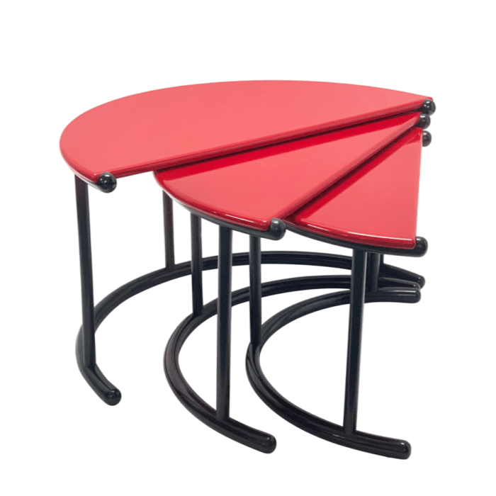 Gianfranco Frattini ‘Tria’ per Morphos Acerbis -Tavolini ad incastro rossi Italia, anni ’80