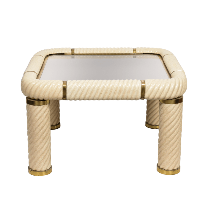 Incredibile t Tavolo da cocktail quadrato in ottone e vetro specchiato in ceramica stile Hollywood Regency della metà del secolo. Questo meraviglioso oggetto è stato disegnato in Italia negli anni ’70 e disegnato da Tommaso Barbi. Questo straordinario pezzo presenta gambe a colonna in ceramica […]