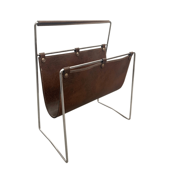 Portariviste in acciaio cromato e pelle prodotto in Francia negli anni ’70 nello stile di Jacques Adnet. Accessorio di lusso in ottime condizioni, ideale per qualsiasi ambiente o ufficio moderno. L’articolo non è troppo pesante e facilmente spostabile, con un design semplice ed elegante. Il […]