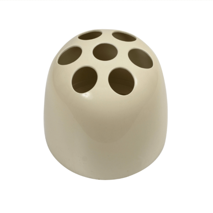 This umbrella stand, model Dedalo, was designed by Emma Gismondi Schweinberger and manufactured by Artemide in 1966. It is made from ABS plastic in black. The original object was produced in three different sizes: small pencil holders (Dedalino), middle sized flower vases (Dedalotto) and large […]