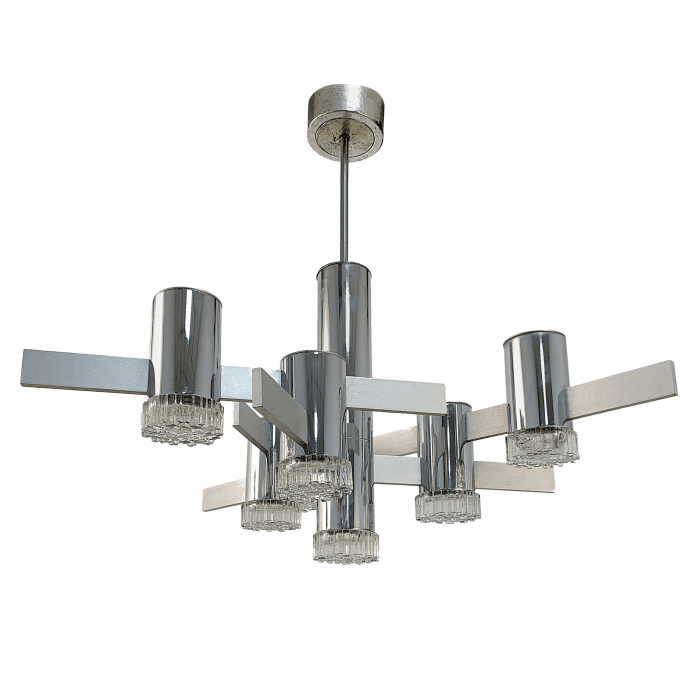 Gaetano Sciolari, lampadario in alluminio e acciaio, “Serie geometrica” Italia, anni ’70