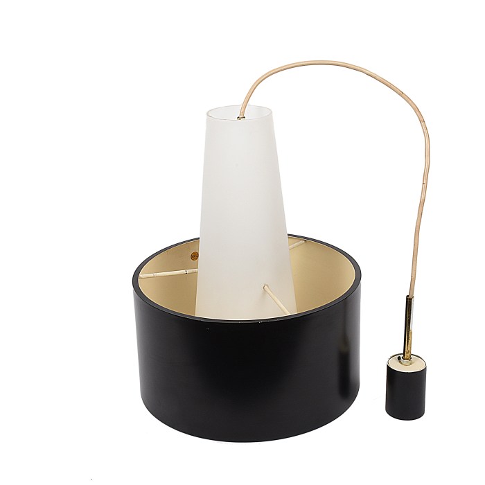 Stilnovo Italia 1950s – Lampadario firmato in vetro opaline e metallo smaltato.