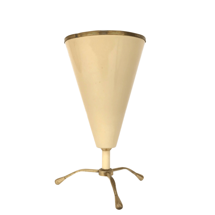 Lampada progettata in uno stile molto raro degli anni ’50 francesi. Il creatore è Pierre Guariche (1926-1995), editore: Disderot Base in treppiede di metallo nero. Supporta un diffusore rotaflex. Lampadina E27. Interruttore a pulsante. Bibliografia: The Household Art Flammarion Edition 1963 (pagina 344). DIMENSIONI H […]