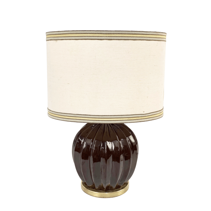 Lampada da tavolo Mid-Century in ceramica marrone smaltata italiana stile Tommaso Barbi, anni ’70