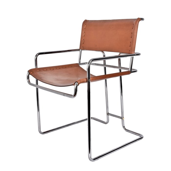 i4 Mariani, Poltrona in acciaio cromato e cuoio italiano, design Faleschini – Genuine Italian leather and chromed steel signed i4 Mariani by Faleschini 1970s