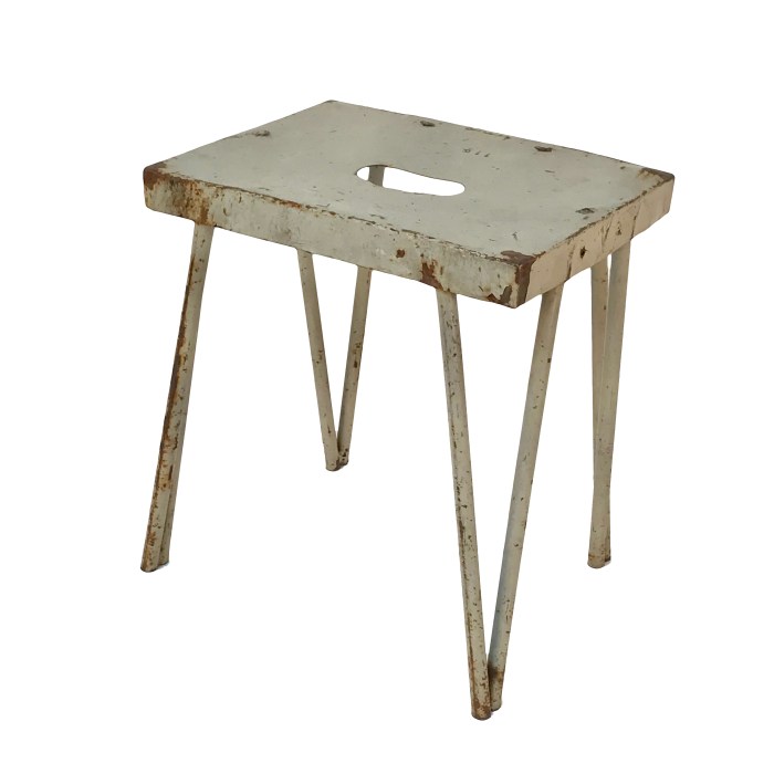 Sgabello francese anni ’40 in ferro con piedi in acciaio. Industrial style