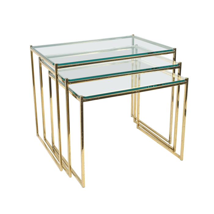 Set di tre tavolini a incastro in alluminio e vetro fumè, Italiaanni ’70