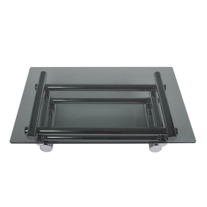 Mid-Century modern smoked glass coffee table in chrome-plated tubular in the style of Paul Mayen Measurements: 63×99 Smoked glass top – Base measures: 90×54 h 29