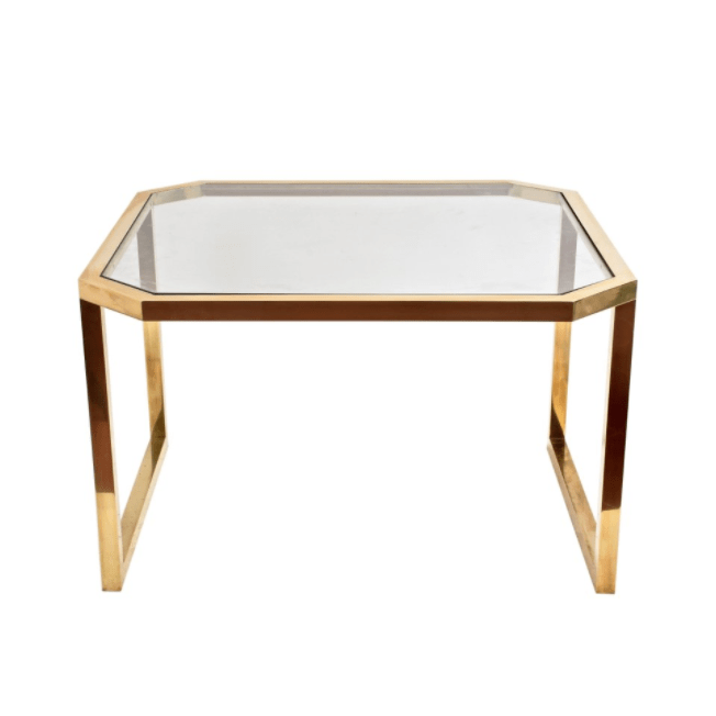 Tavolino da caffè in ottone e vetro, Italia 1970
