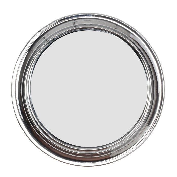 Specchio rotondo vetro molato, cornice in alluminio, Artemide Style. Italia anni ’60