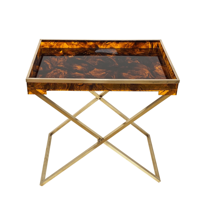 Tavolino pieghevole, vassoio da portata maggiordomo Lucite tartarugato, stile Willy Rizzo, Italia
