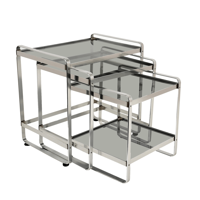 Tavolini nidificazione in alluminio Misure tavolino più grande: H 47 cm x L 46,5 cm x P 34 cm