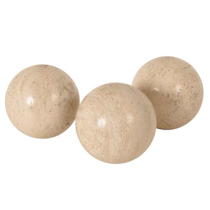 Tre sfere di marmo, travertino lucido, Oggetto ornamentale, Italia, anni ’70